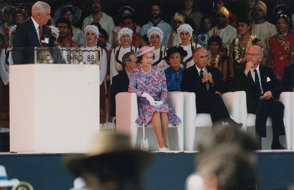 The Queen returned to Australia for the Bicentennial celebrations and came to Brisbane to open Expo '88.