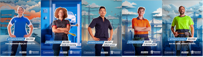 The campaign includes advertisements running across social media and digital channels, with the message that apprenticeships deliver for apprentices, employers and Queensland.