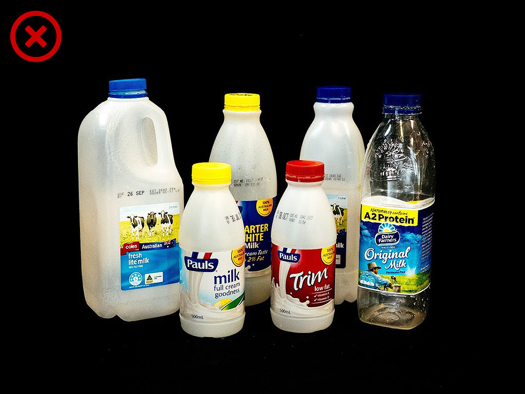 - large containers (1L or more) which have contained flavoured milk, pure juice, cask wine or cask water