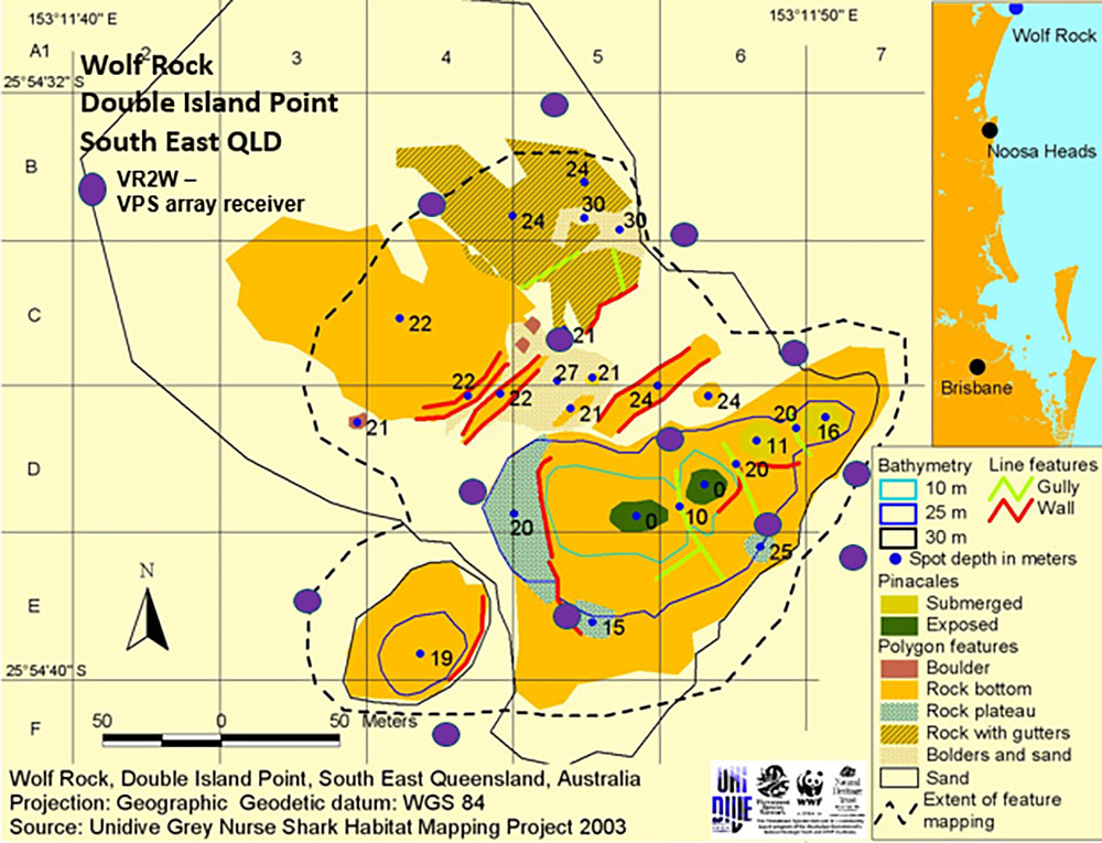 Grey nurse shark designated area Wolf Rock (Great Sandy Marine Park)