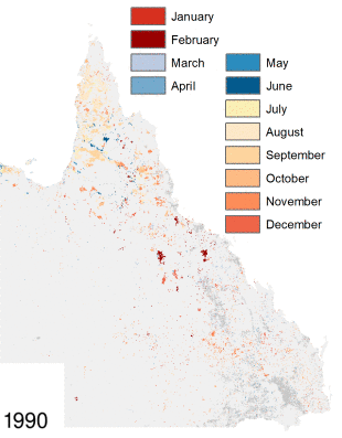 Statewide fire scar mapping is available from the Queensland Spatial Catalogue - QSpatial (using the search term ‘fire scars’) and from the TERN Data Discovery Portal (2017 onwards and 1986–2016). Data types are: