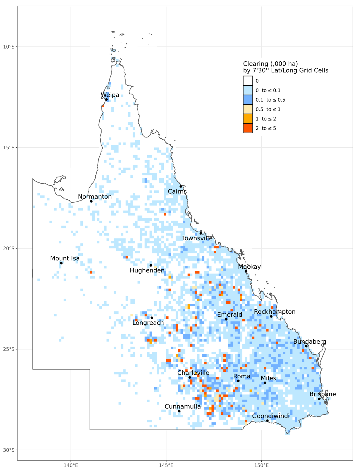 - Full clearing refers to areas which have been converted from woody to non-woody (i.e. less than 10% crown cover remains).