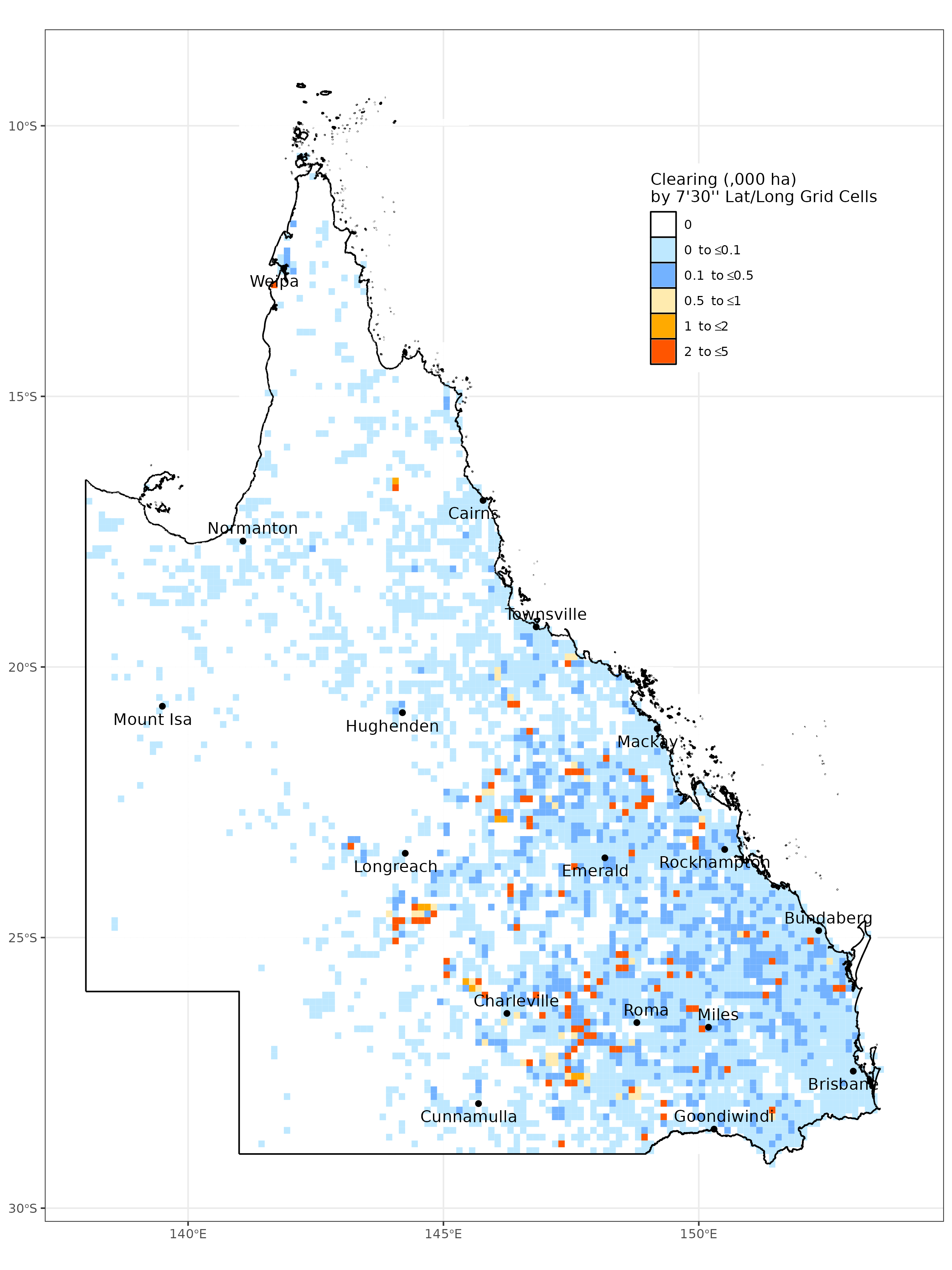 - Full clearing refers to areas which have been converted from woody to non-woody (i.e. less than 10% crown cover remains).