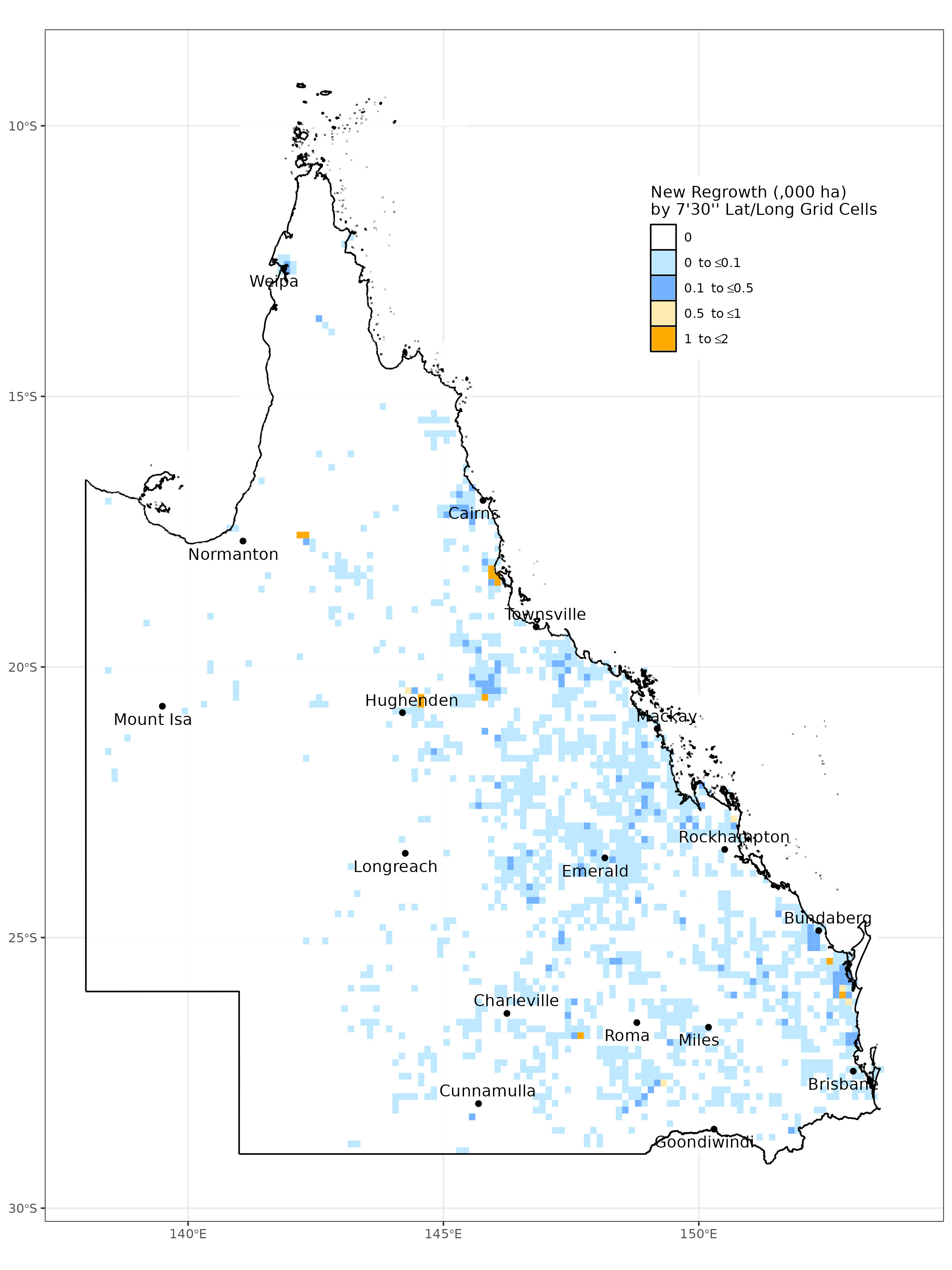 - Approximately 7.6 million ha of this woody vegetation is existing regrowth. The remainder is remnant or high-value regrowth woody vegetation.