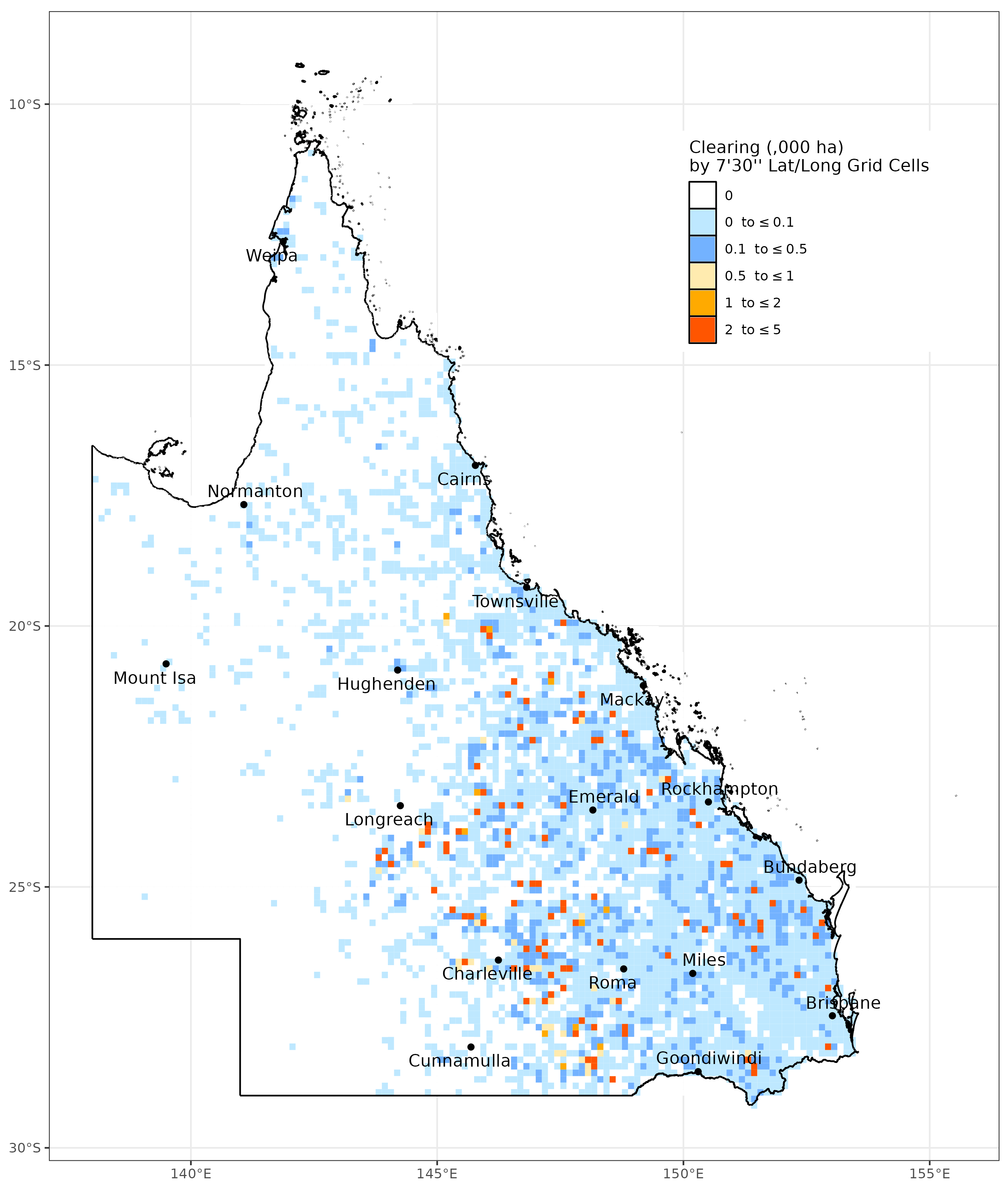 - Full clearing refers to areas which have been converted from woody to non-woody (i.e. less than 10% crown cover remains).