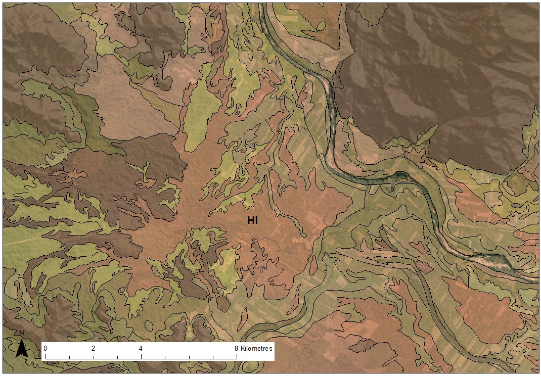 | Landform | Undulating to very steep hill mountains and occasional mesa formed on sedimentary rocks, metamorphics and minor volcanics | Undulating plains and rises developed on sedimentary rocks, tertiary basalt and unconsolidated sediments |