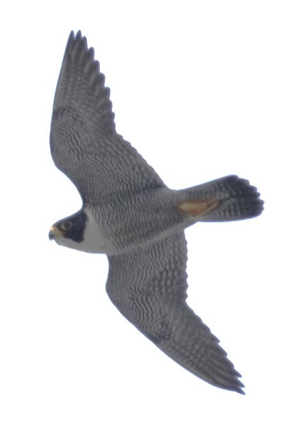 Peregrines have a body length of 35-50 cm and an 80-105 cm wingspan, with the females being slightly larger than the males. They have a distinct, heavyset chest (big pectoral muscles for flight) and broad-based wings with each ending in a pointed tip.