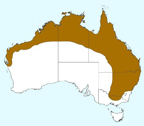 Little red flying-foxes are highly nomadic, following the seasonal flowering of eucalypts and melaleucas. Unlike other flying-fox species, little reds mostly eat native tree blossom and nectar as opposed to fruit. They may roost in large numbers – sometimes 100,000 or more – and typically stay 4 to 8 weeks in an area before moving on once the local food source has been exhausted. They are found right across northern Australia, and seasonally in New South Wales and Victoria (Figure 1).