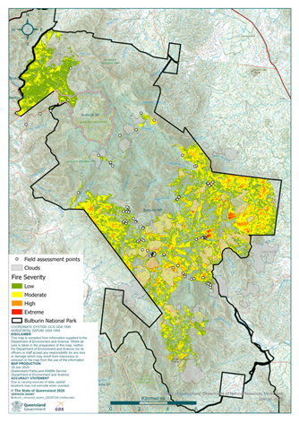 Read the full report Post-fire Assessment Report— Natural Values: 2019/2020 bushfire, Bulburin National Park, South East Queensland Region, August 2020 (PDF, 4.4MB)