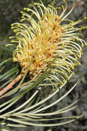The Coochin Hills grevillea flowers year-round, with most flowers in March and October. Its creamy yellow flowers attract birds and other wildlife, which are believed to play a crucial role in pollinating the species.