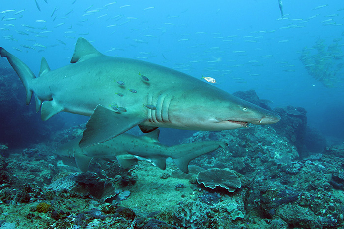 The grey nurse shark is often dubbed the Labrador of the sea and is not considered a threat to people.