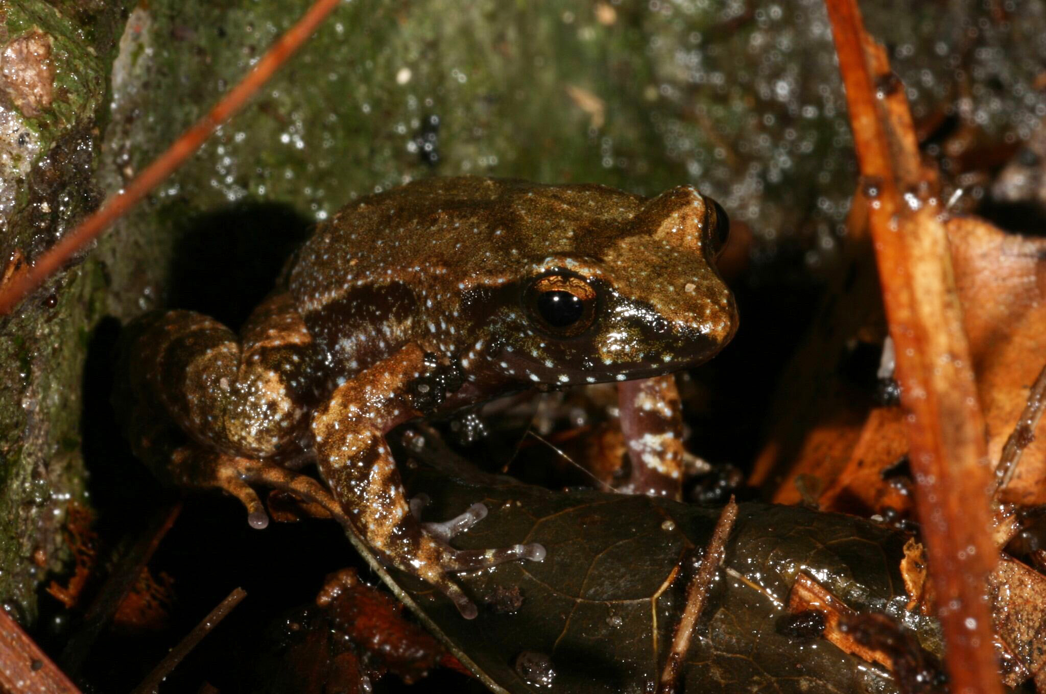 Tinker frogs are hard to find as they have markings and colouration that provide excellent camouflage in the wild. We only know this highly cryptic species is present when we hear its distinctive calling.