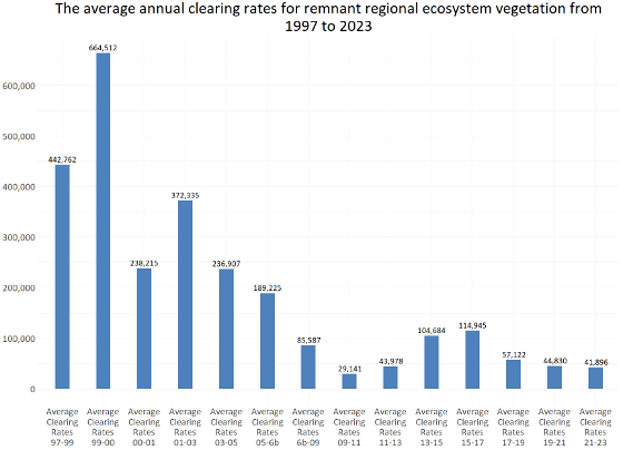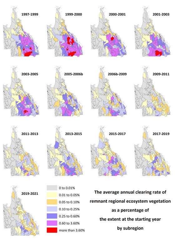 Average annual clearing rate of remnant regional ecosystem vegetation 1997–2021