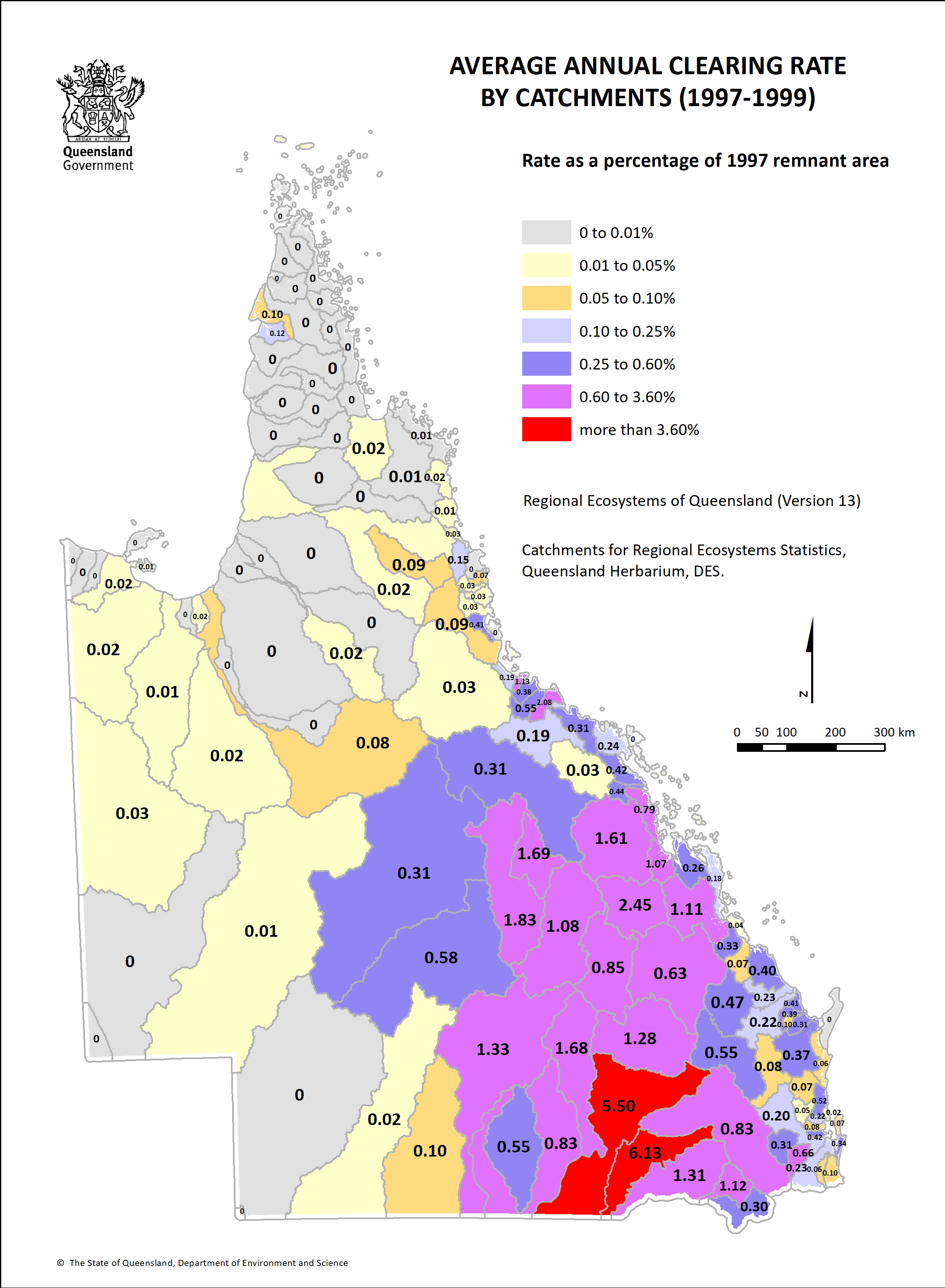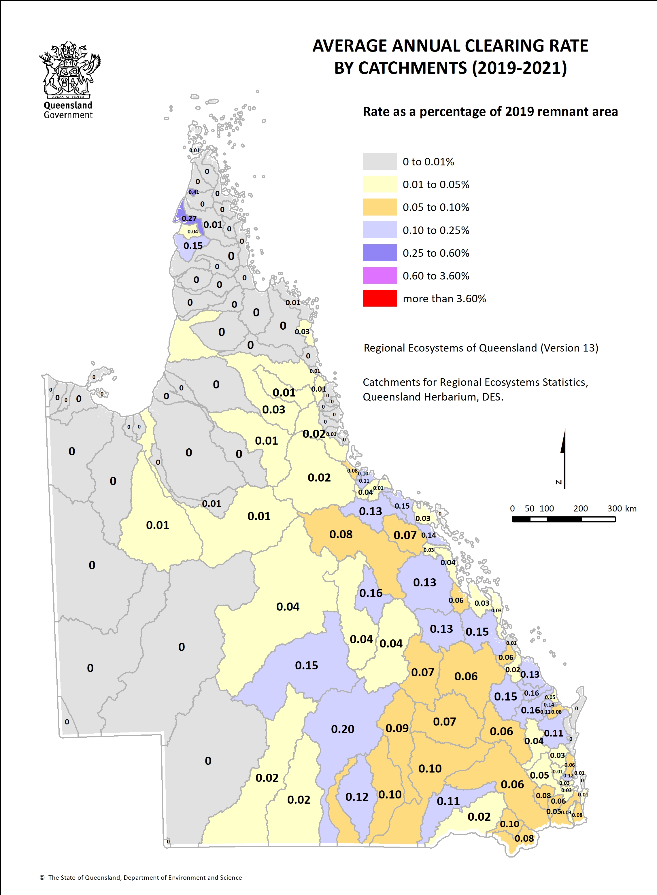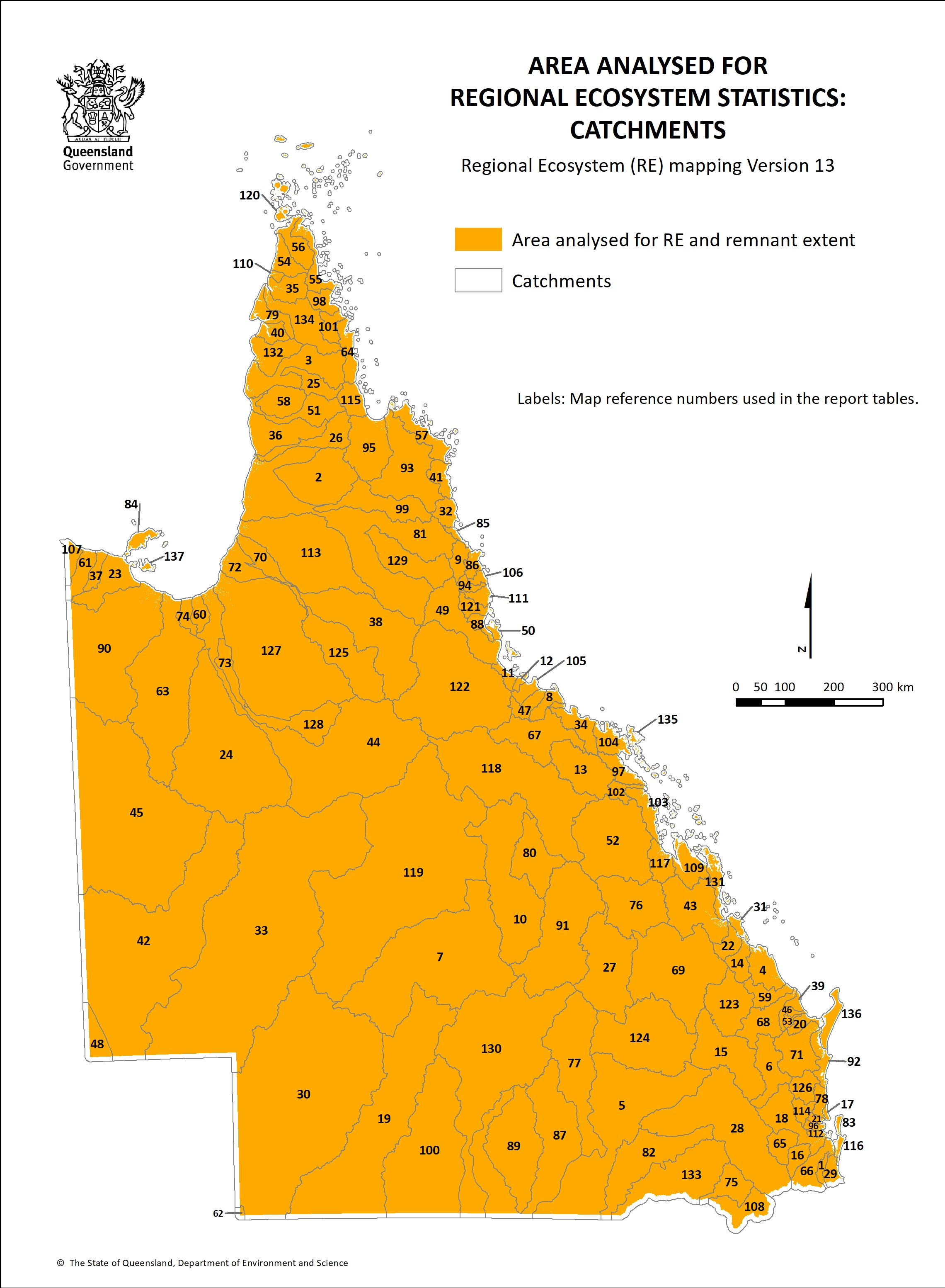 Catchment analysis of remnant vegetation by regional ecosystem vegetation communities between 1997 and 2021 showing analysis of regional ecosystems by catchment.