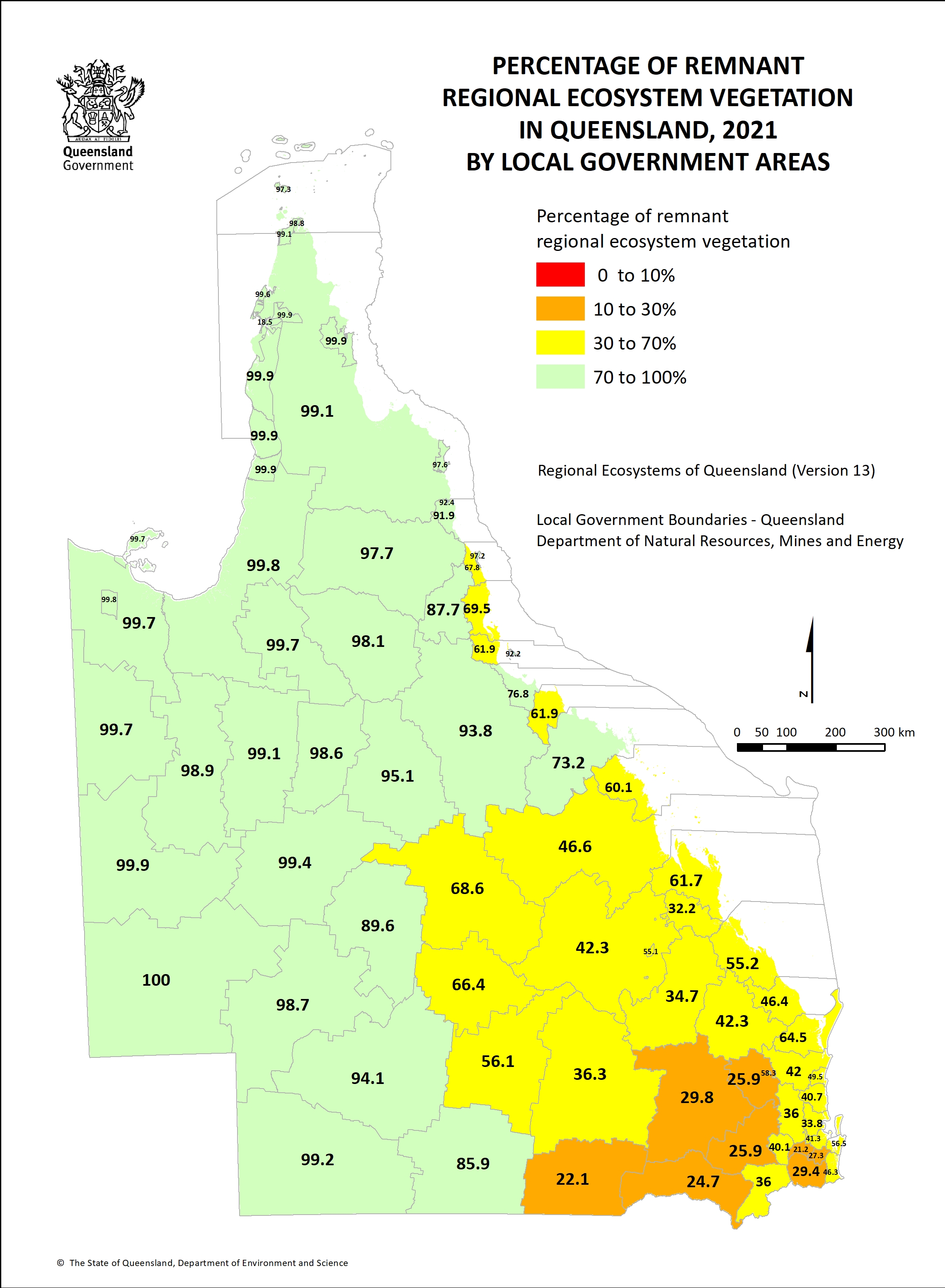 Local government areas (LGA) analysis of remnant vegetation by regional ecosystem vegetation communities between 1997 and 2021.
