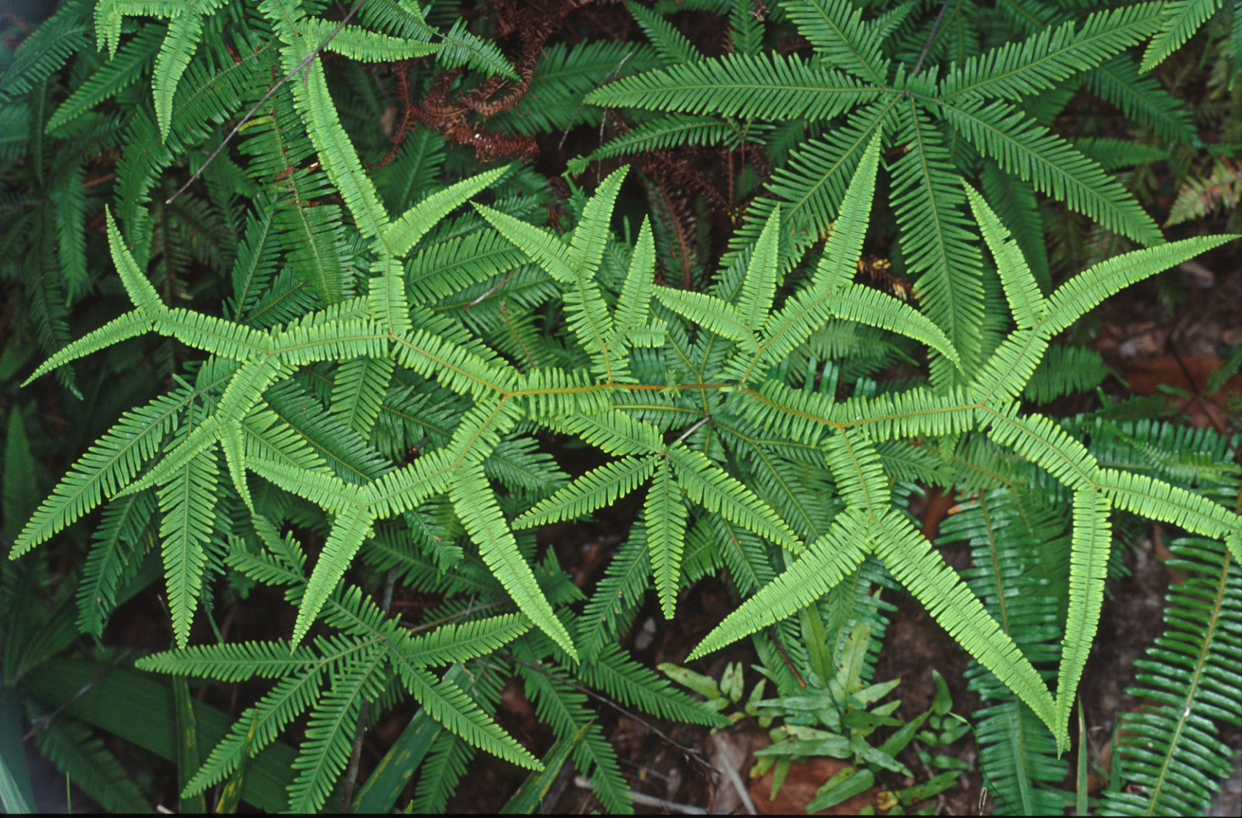 Queensland has 16 species of tree ferns (Alsophila, Cyathea, Sphaeropteris (Cyathaceae), Dicksonia (Dicksoniaceae), Leptopteris and Todea (both in Osmundaceae), 43 species of filmy ferns (family Hymenophyllaceae), 11 species of tassel ferns (Phlegmariurus species), 10 species of maidenhair ferns (Adiantum species, family Pteridaceae)—one of which has four distinctive varieties (rough maidenhair, Adiantum hispidulum)—and nine species of club moss (Selaginella species). Drought tolerance is a feature of some genera of Pteridaceae, specifically Cheilanthes (12 species) and Pellaea (5 species).