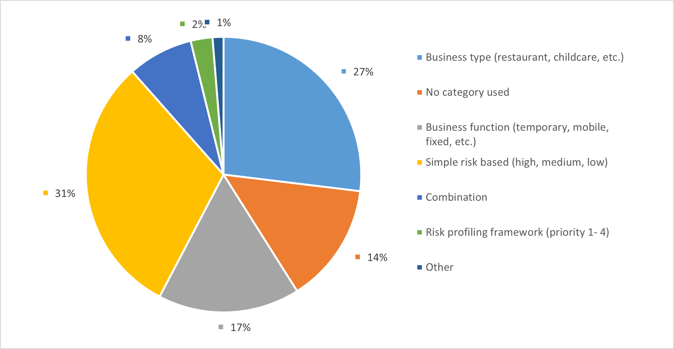 Local governments were asked to specify their primary method of categorising of licensed food businesses from a set list and the results are listed below and shown in Figure 2.