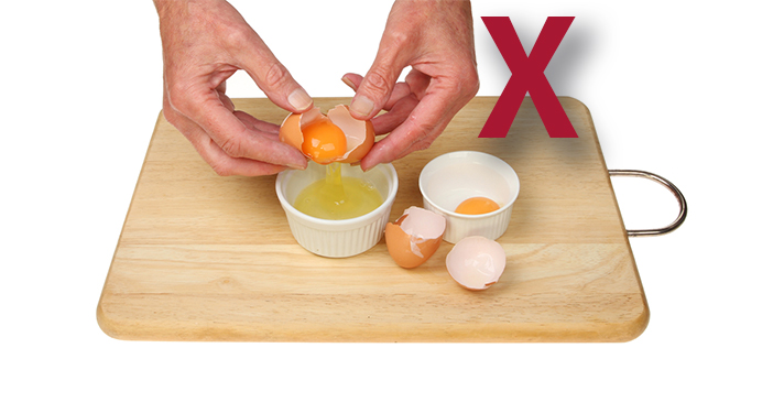 - use a clean and sanitised egg separator to reduce the risk of any bacteria contaminating the egg yolk or egg white