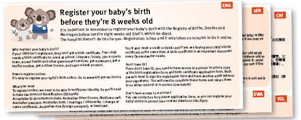 Hospital staff can help parents who speak a language other than English understand how to register their baby’s birth.