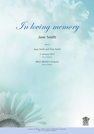 To recognise your loss, you can apply for a free recognition certificate—there are 2 designs for you to choose from. You can't use the certificate for official purposes.