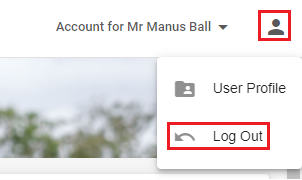 To log out, click the 'person' icon in the top right hand corner. Click 'Log Out'.