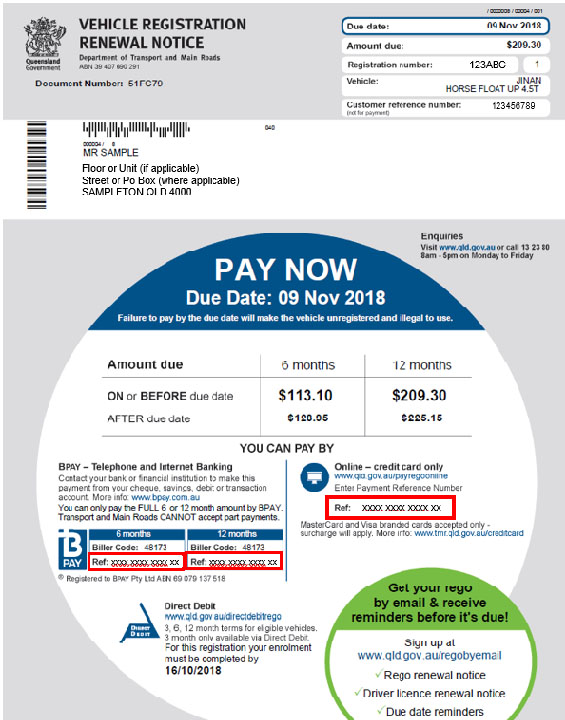 Your payment reference number is shown on a range of Department of Transport and Main Roads products and documents, but may be listed by another name.