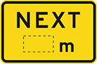 ![]() ![]() | Next …km and Next…m signs This sign is used to let you know that a number of hazards will be present for the indicated length on the sign. |