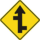 ![]() ![]() | Side road intersection signs An intersection is ahead made by a side road joining the continuing road. This sign warns you that you are approaching an intersection with a side road. |